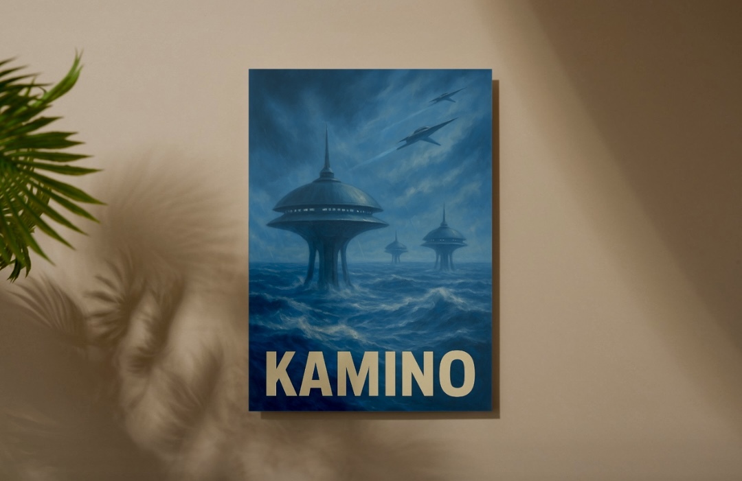Unikalny plakat w formacie A3 przedstawiający planetę Kamino, znaną jako miejsce narodzin Armii Klonów. Wyjątkowa grafika w odcieniach błękitu, ukazuje monumentalne miasto Tipoca, wynurzające się ponad oceaniczne fale. To połączenie filmowej magii i designerskiego stylu, które świetnie się sprawdzi jako dekoracja pokoju, biura czy przestrzeni kolekcjonerskiej. Wysokiej jakości wydruk sprawia, że plakat prezentuje się niezwykle efektownie.