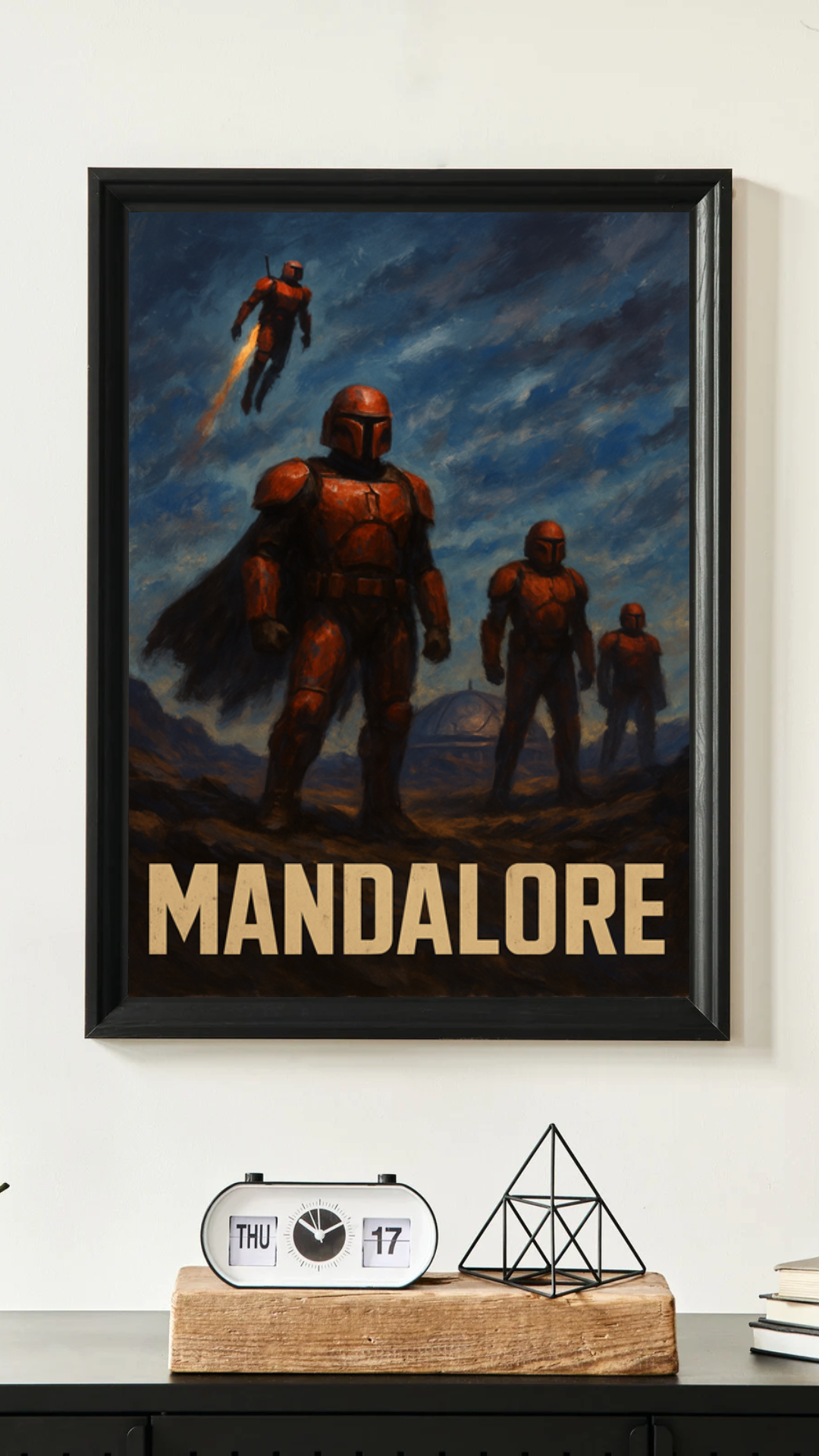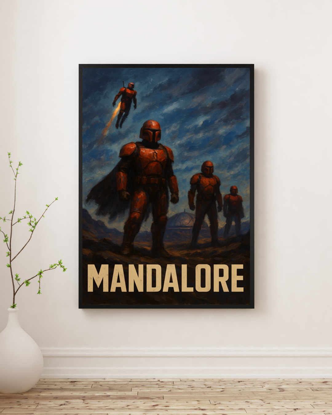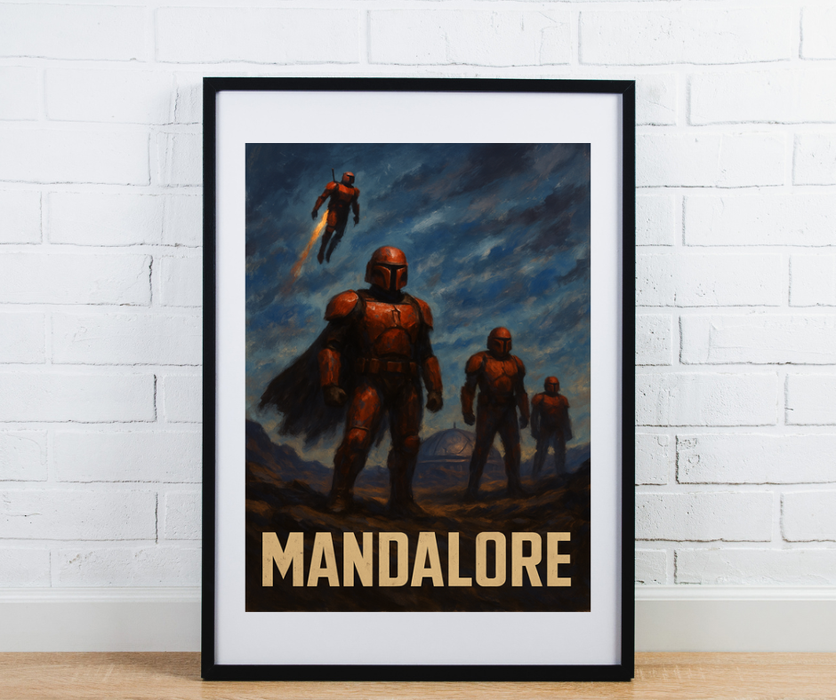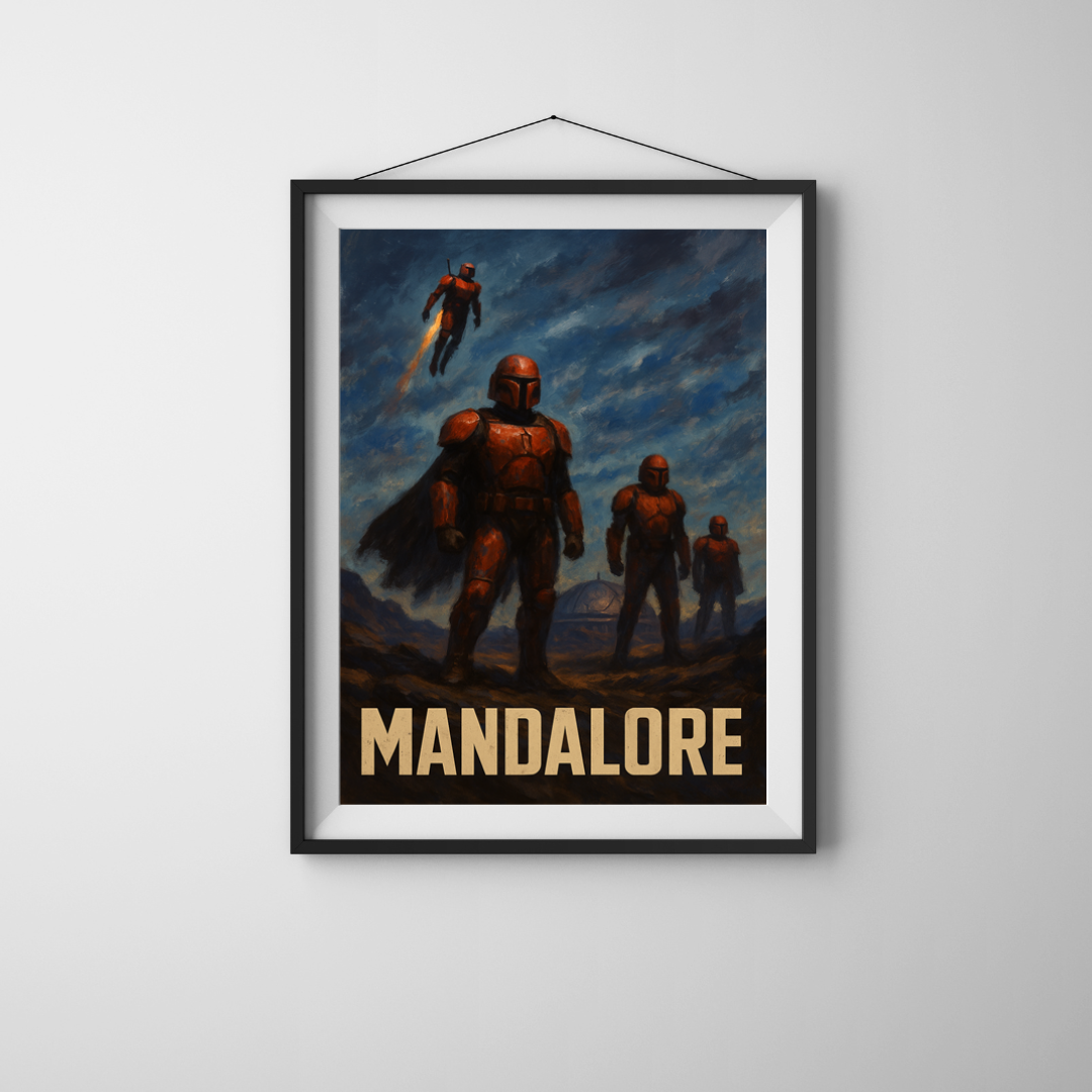 Grafika została zaprojektowana, tak aby oddać unikalny etos Mandalorian — ich wojowniczą kulturę, honor oraz nieugiętą naturę. Burzowe niebo, dramatyczne oświetlenie i kontrast czerwonych pancerzy z mrocznym pejzażem tworzą prawdziwie filmowy kadr. Wydruk w formacie A3 wykonany jest na wysokiej jakości papierze, co gwarantuje trwałość i nasycone barwy. To grafika, której nie znajdziesz w żadnym innym produkcie — powstała w ramach projektu Magnetifit.