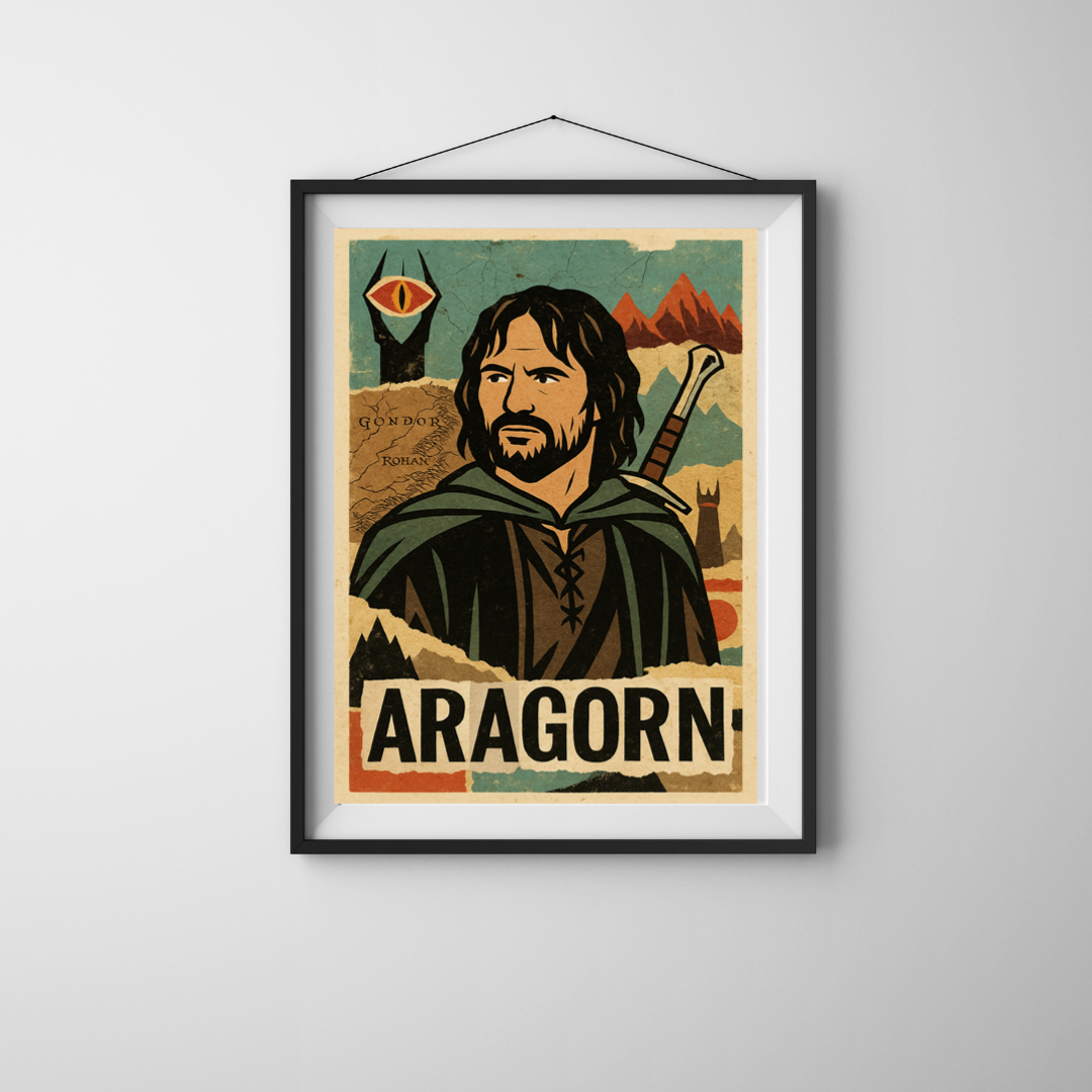 Kolekcja plakatów inspirowanych „Władcą Pierścieni” to wyjątkowa propozycja dla fanów Tolkiena, miłośników fantasy i wszystkich, którzy szukają oryginalnego prezentu. Każdy plakat A3 przedstawia jednego z kultowych bohaterów lub legendarnych stworzeń Śródziemia – od Gandalfa i Aragorna po Legolasa, Gimliego, Froda, Arwen, a nawet Balroga – w charakterystycznym, retro-podróżniczym stylu.