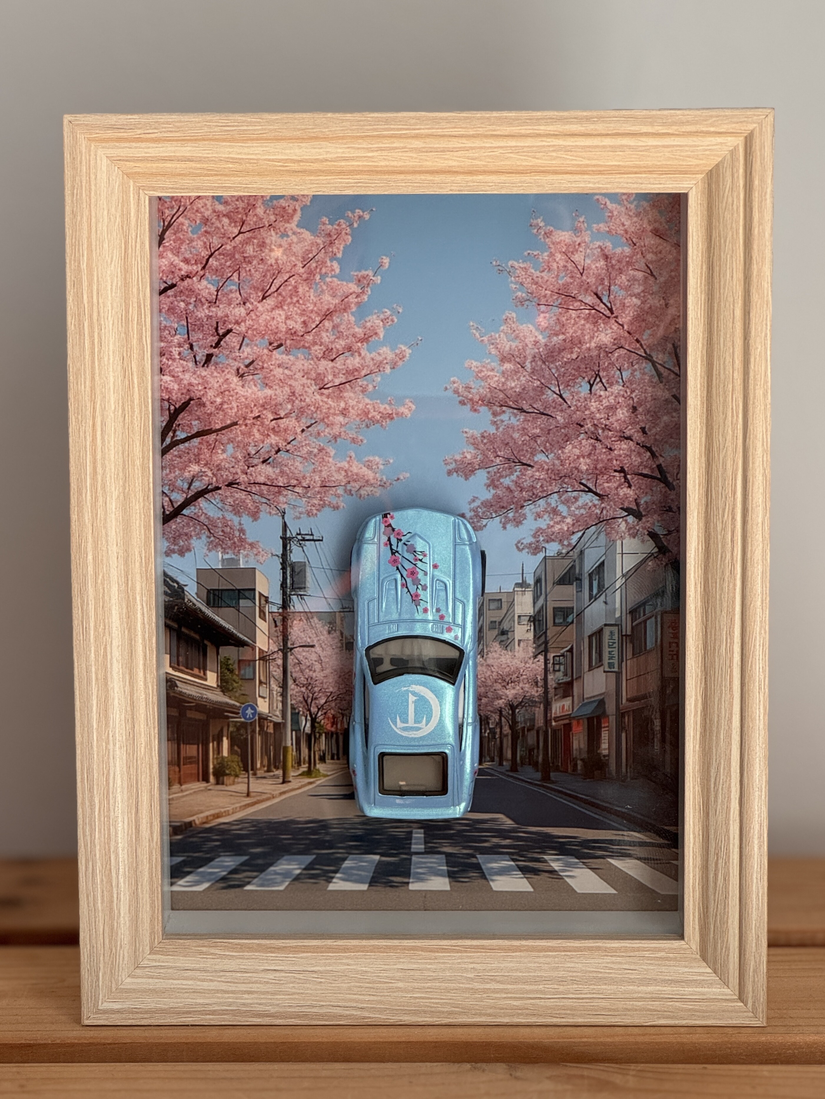 W zestawie otrzymujesz ramkę, model Hot Wheels oraz autorską grafikę dopasowaną do auta.