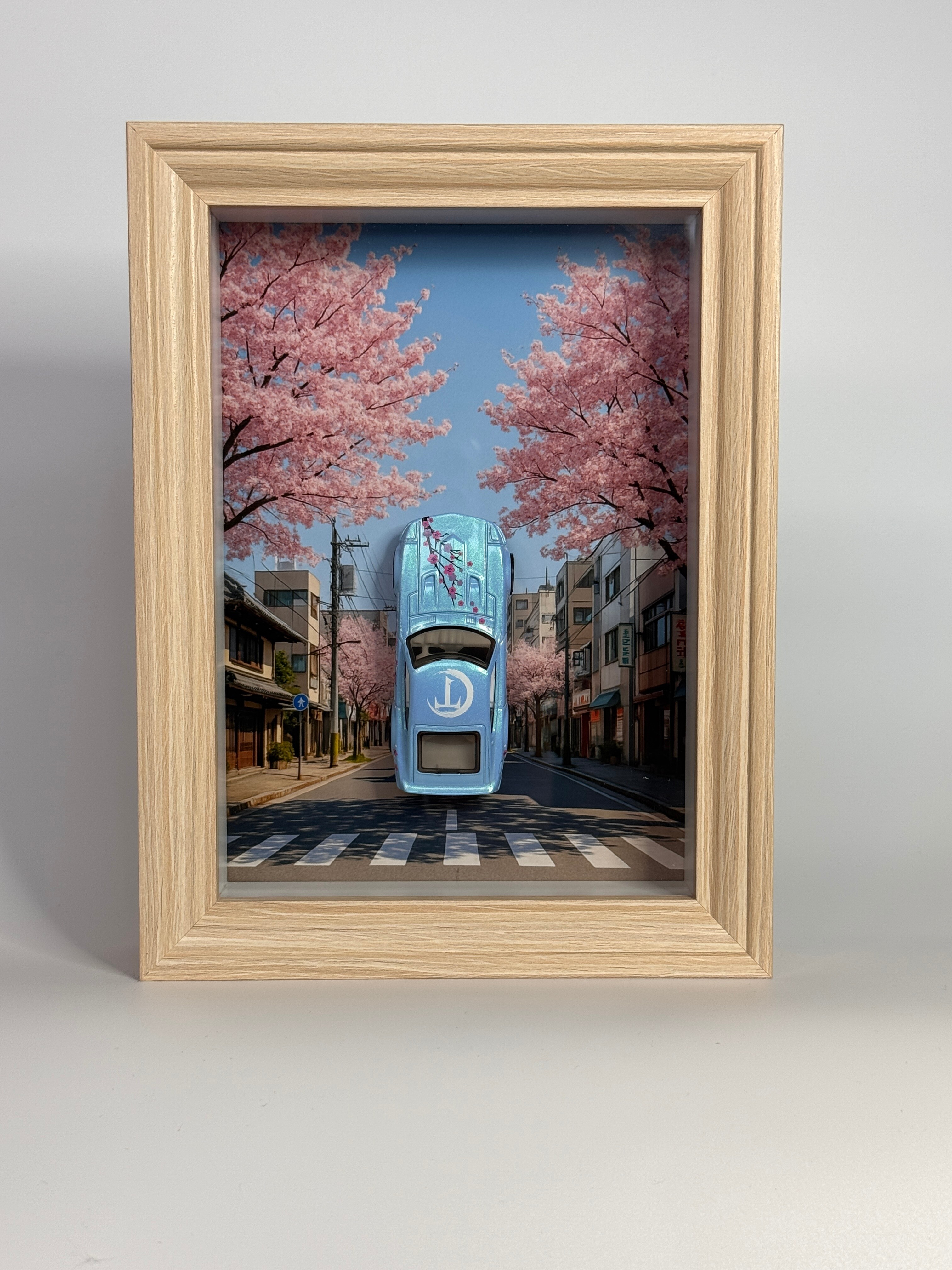 Ramka została zaprojektowana tak, aby model wyglądał jak miniaturowy eksponat — głęboka forma 3D, dopasowana kolorystyka i odpowiednio dobrane proporcje sprawiają, że całość przyciąga wzrok w każdym wnętrzu. To idealny element dekoracji dla fanów motoryzacji, miłośników Japonii i osób ceniących unikatowe, kolekcjonerskie dodatki.