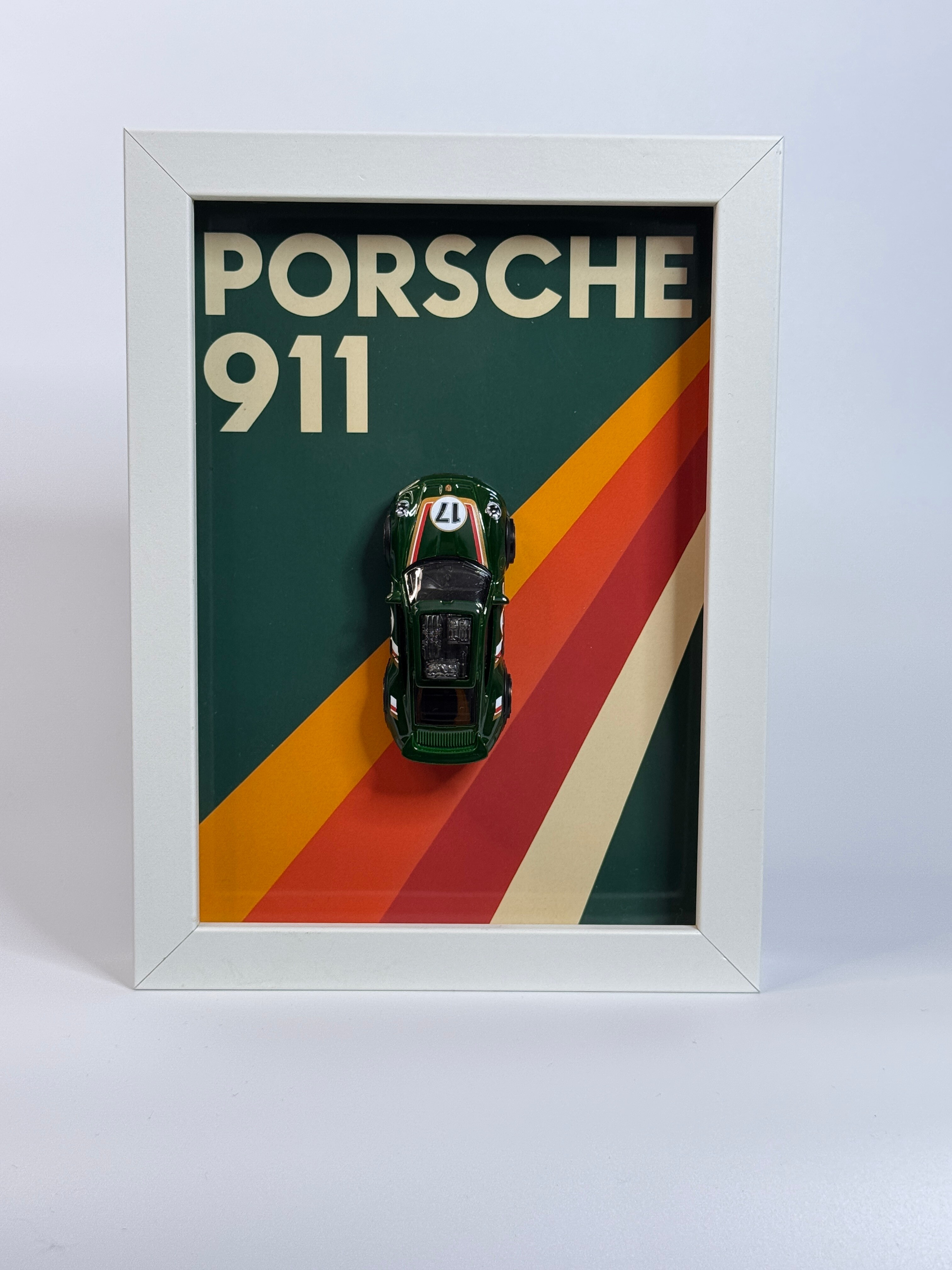 Prezentujemy kolekcjonerską ramkę 3D Magnetifit z modelem Porsche 911 — ikoną motoryzacji i jednym z najbardziej rozpoznawalnych sportowych samochodów świata. Oryginalny model Hot Wheels w klasycznej zielonej kolorystyce został umieszczony na tle inspirowanym estetyką lat 70., z charakterystycznymi retro-pasami w barwach żółci, pomarańczy i czerwieni, które tworzą dynamiczną, ponadczasową kompozycję. Grafika przyciąga uwagę od pierwszego spojrzenia, a minimalistyczny napis „PORSCHE 911” podkreśla legendarny charakter modelu.