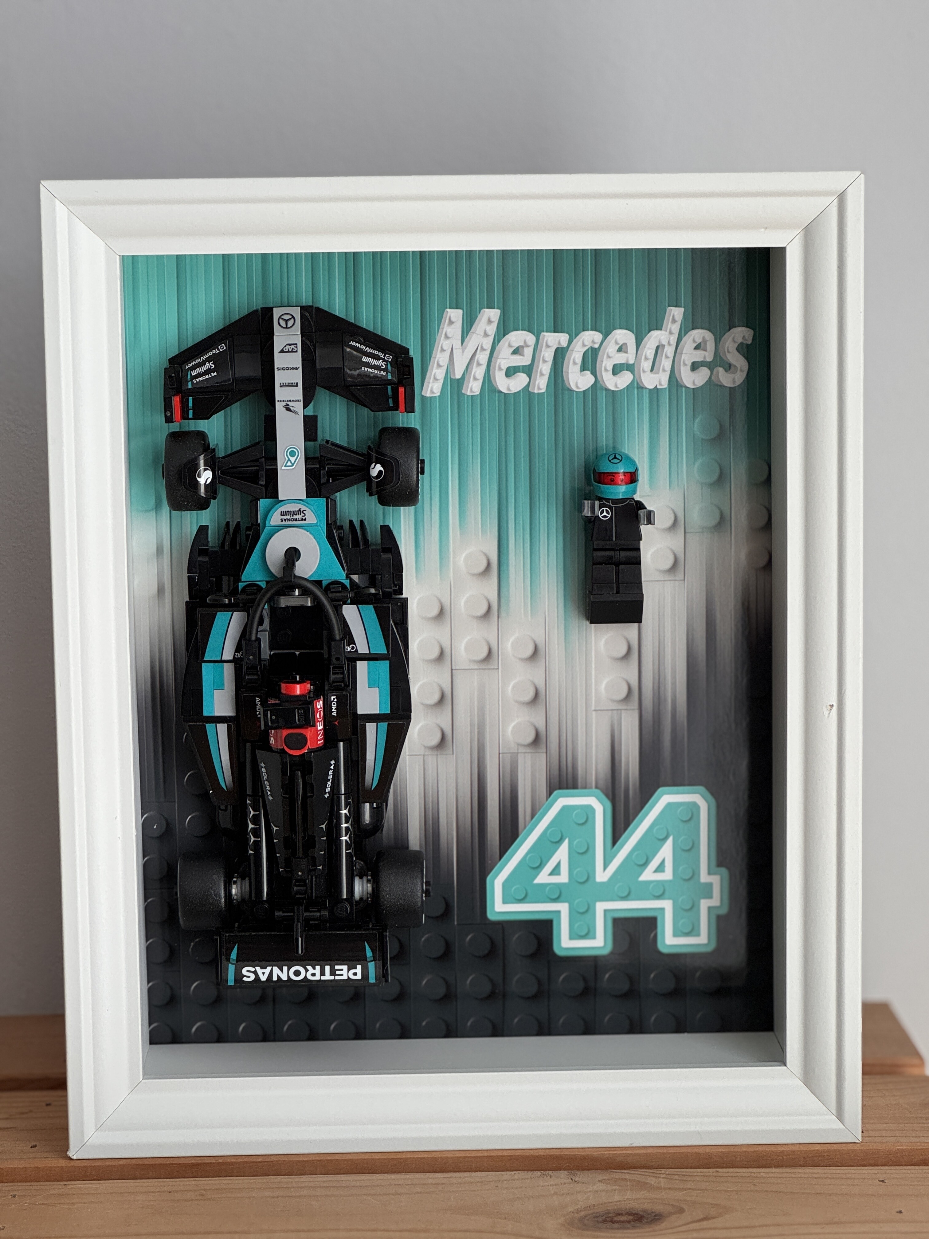 Ramka ekspozycyjna do modeli LEGO® Speed Champions to elegancki dodatek, który podkreśla wyjątkowy charakter kolekcji. Dopasowana ramka doskonale komponuje się z wyścigową estetyką. Tło ramki stanowi wysokiej jakości nadruk graficzny w barwach zespołu.