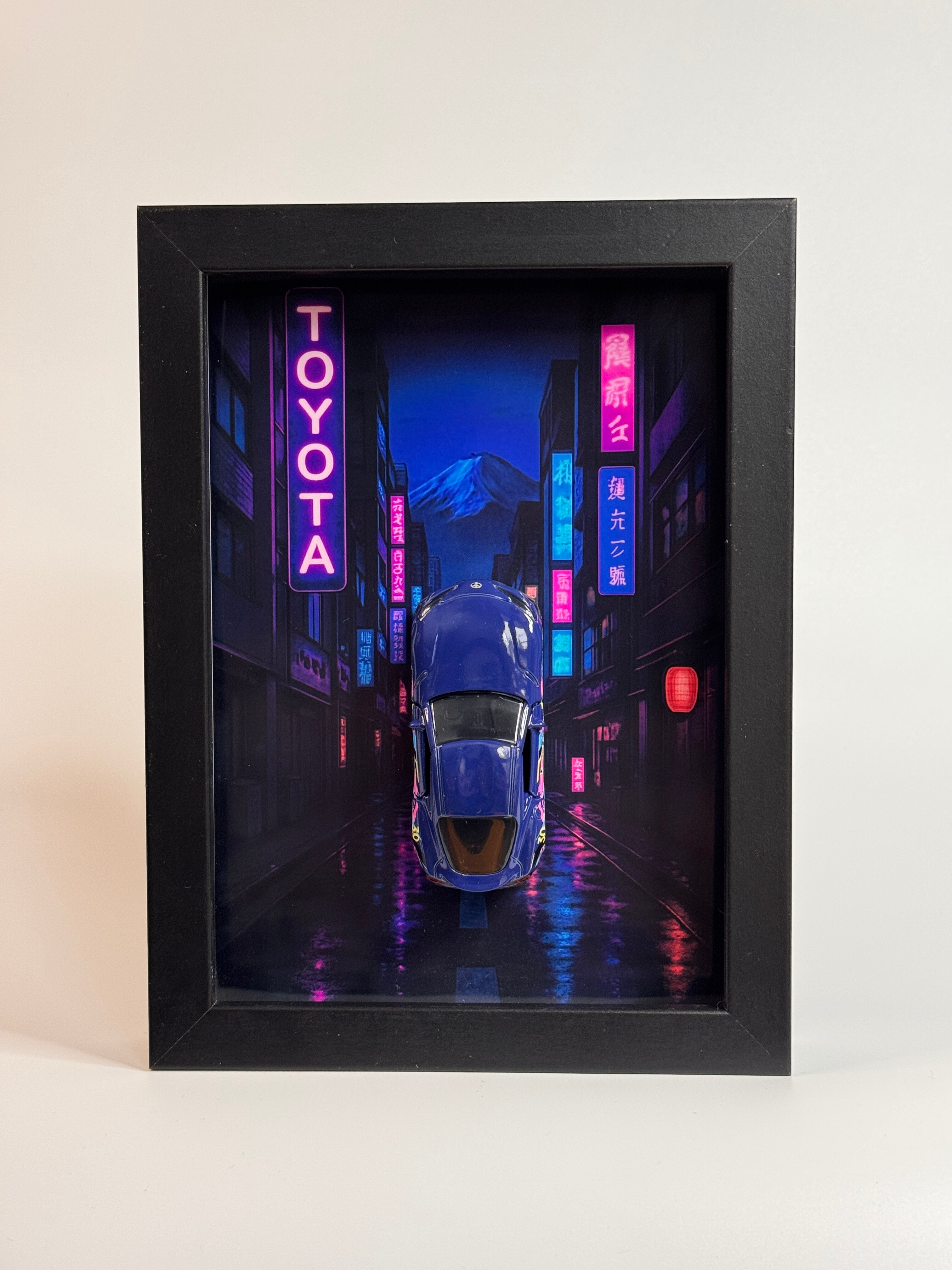 Neonowa ramka kolekcjonerska Magnetifit prezentuje spektakularny model Toyota Supra Majorette w wyjątkowej formie przestrzennej 3D. Dynamiczna, futurystyczna grafika tła inspirowana jest japońskimi ulicami, neonami i kulturą nocnego street-racingu – perfekcyjnie podkreślając charakter i sylwetkę Supry.