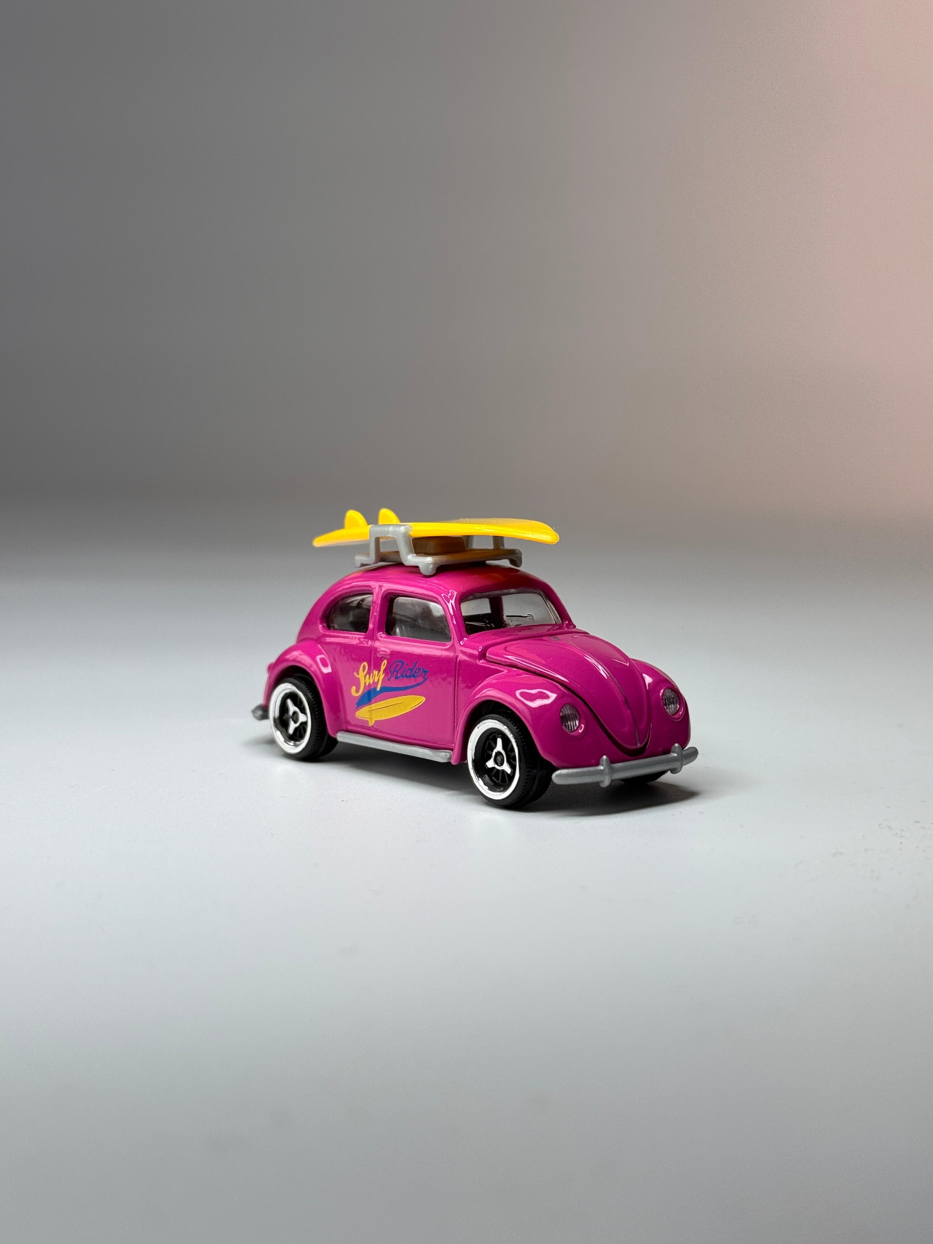 Prezentujemy kolekcjonerską ramkę 3D Magnetifit z modelem Volkswagen Beetle Surf Rider — energetyczną, letnią odsłoną kultowego Garbusa, stworzoną dla miłośników surfingu, plażowego klimatu i klasycznej motoryzacji. Oryginalny model Majorette w intensywnym, różowym kolorze z deską surfingową na dachu został osadzony na tle inspirowanym estetyką retro-miasta nad oceanem: palmy, zachodzące słońce, neonowa panorama i żywe, promieniste kolory tworzą wyjątkowo wakacyjny, pozytywny klimat.